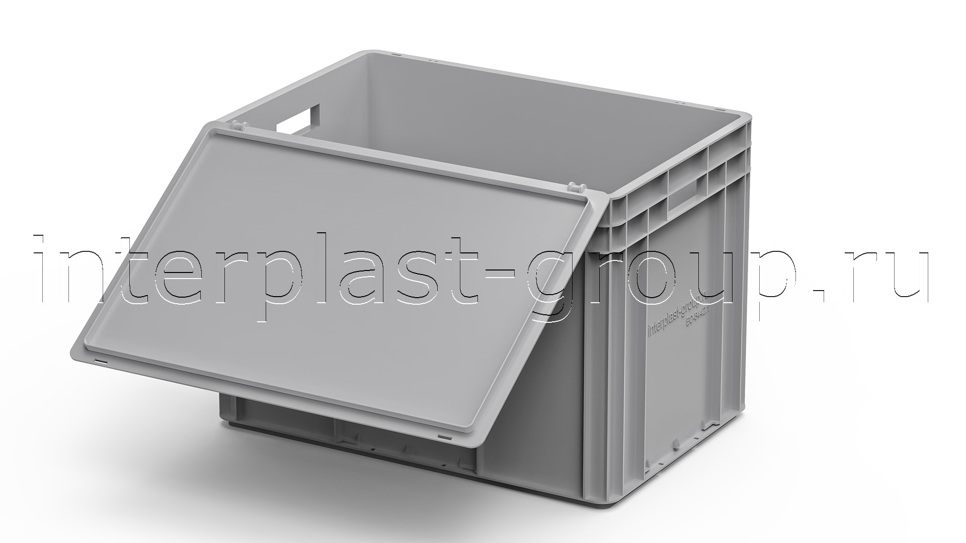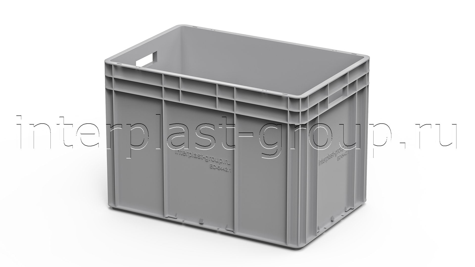 Евроконтейнер открытые ручки/сплошное дно (серый), 600x400x420 мм